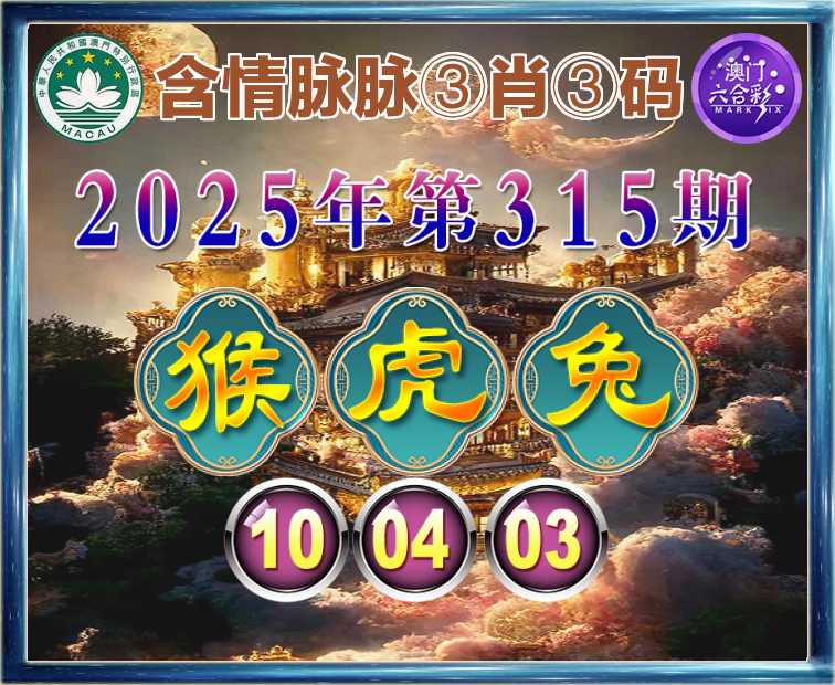 315期:『含情脉脉』 🩴③肖③码🩴【猴兔】【10.04.03】开:虎04