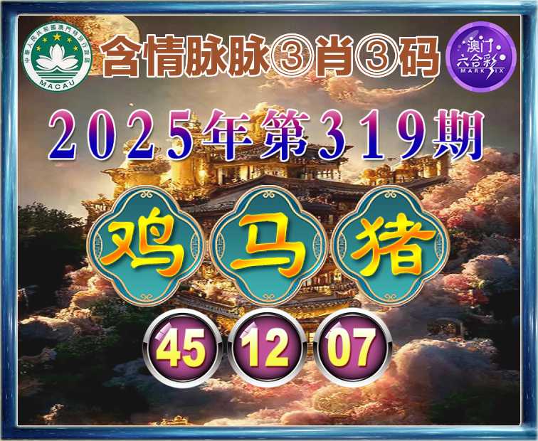 319期:『含情脉脉』 🩴③肖③码🩴【马猪】【45.12.07】开:鸡45