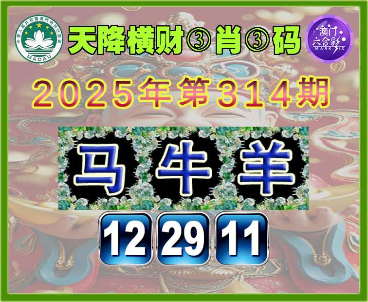 314期:〖天降横财〗 👘③肖③码👘【马牛】【12.29.11】开:羊23