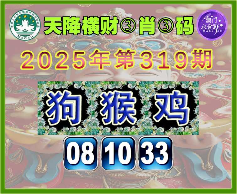 319期:〖天降横财〗 👘③肖③码👘【狗猴】【08.10.33】开:鸡45