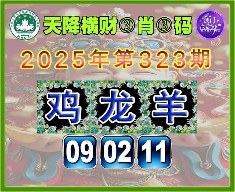 323期:〖天降横财〗 👘③肖③码👘【龙羊】【09.02.11】开:鸡09