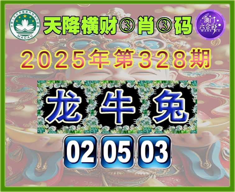 328期:〖天降横财〗 👘③肖③码👘【龙牛】【02.05.03】开:兔03